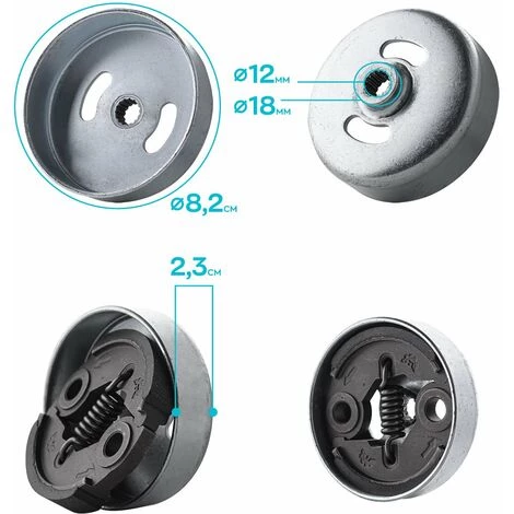 Ensemble complet d’embrayage pour motoculteurs de 52 cc, comprenant l’embrayage et le tambour. Fabriqué en alliage d’aluminium, il est extrêmement solide, fiable et durable. Livré pré-assemblé et très facile à installer.