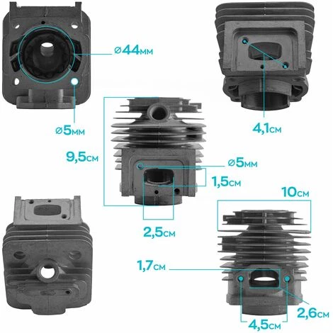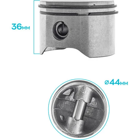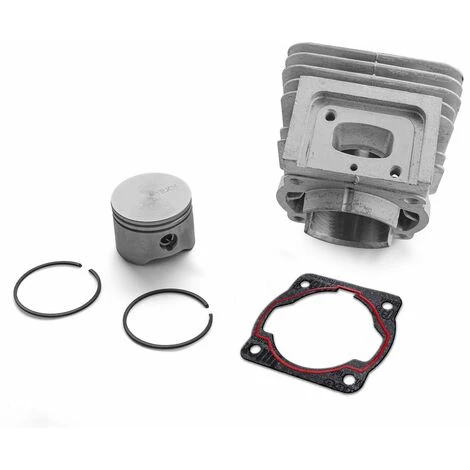 Groupe thermique pour motoculteur 52cc comprenant un cylindre en alliage d’aluminium complet avec joint d’étanchéité et un piston en alliage d’acier complet avec segments de piston.