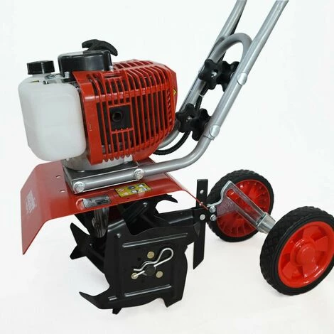 La largeur de travail de la houe de jardin est de 250 mm. Le rouleau de couteau a un total de 16 couteaux (4 x 4). Vous pouvez donc facilement creuser le sol sans effort, travailler avec des engrais et labourer des mauvaises herbes. La terre est parfaitement ameublie par la motobineuse et préparée pour la plantation et le semis.