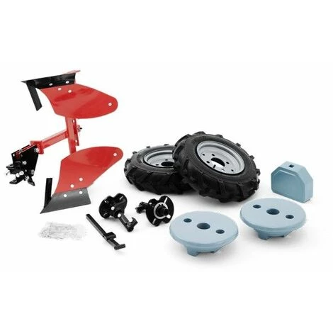 Contenance du kit : 1 charrue brabant + 2 roues agraires 500 X 10 + 3 poids (2 pour les roues, 1 pour le devant du motoculteur)
