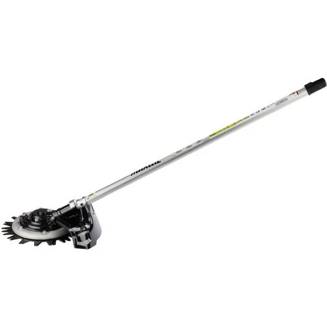 L’accessoire ciseaux EM407MP est compatible avec tous les moteurs multifonctions à batterie et à essence Makita et dispose de deux lames contrarotatives. L’herbe est coupée selon le principe des ciseaux. La faible vitesse de rotation réduit le vol du matériau coupé ou des petites pierres. Le cercle de coupe est de 230 mm.