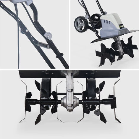 Une rallonge électrique raccordée à la terre sera indispensable pour utiliser votre motobineuse VOLTR<br/>Dimensions produit :