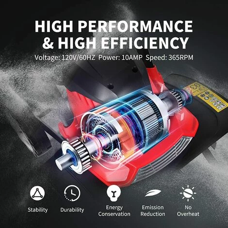 - ★CONCEPTION MOBILE★ Cette motobineuse électrique possède 2 roues, elle peut donc toujours se déplacer de manière flexible et fluide. Même les zones les moins accessibles entre les buissons et les arbustes, cette motobineuse électrique peut également travailler.