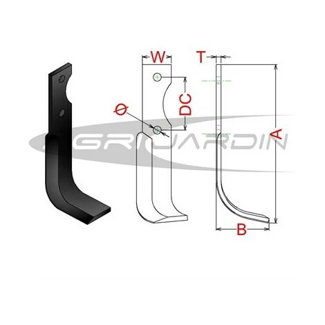 Couteau pour motobineuse adaptable B.C.S Grillino, lame fabriqué en acier au bore de haute qualité.