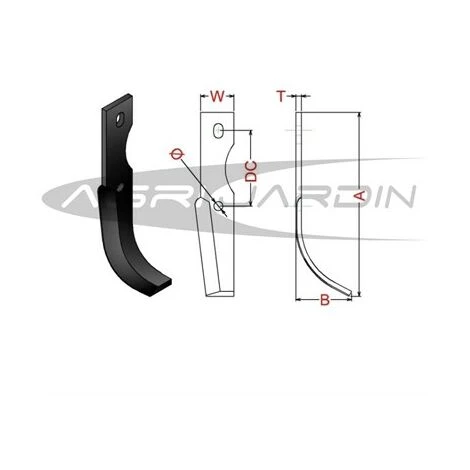 Couteaux de fraise pour motobineuse adaptables: AGRIA 2100, GRILLO, VOLPINO, lame fabriqué en acier au bore de haute qualité.