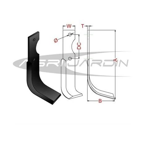 Couteau rotovator pour motoculteur pour AGRIA 7000, PASQUALI 588, KUBOTA, lame fabriqué en acier au bore de haute qualité.