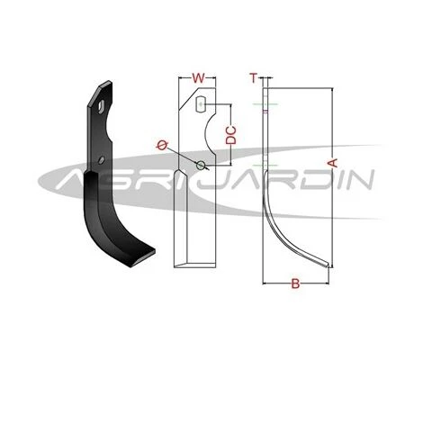 Couteaux de rotavator adaptables aux motoculteurs AGRIA 7700, BENASSI AL-75/3/9, GRILLO GN-10, IMPAL, PASBO, SEP, PASCUALI, lame fabriqué en acier au bore de haute qualité.