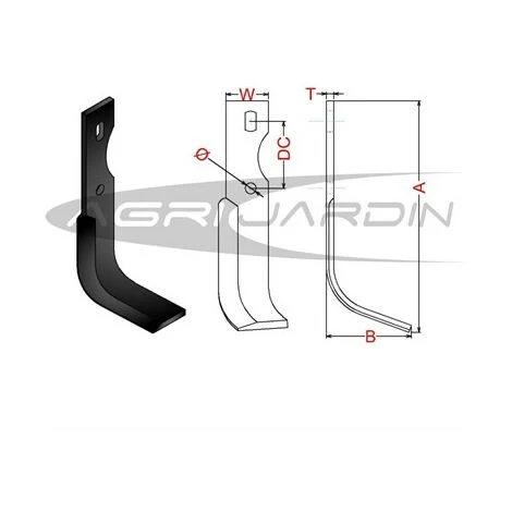 Couteaux pour rotavator de motoculteur adaptable à: BERTOLINI 156021/3, BCS Fresa 20, 59275/72, lame fabriqué en acier au bore de haute qualité.